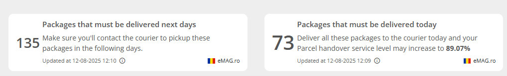 Using these widgets, you will be able to identify in a quick manner those orders, return requests, AWBs or other items which can lead to the account inactivation, if you do not take the recommended actions from the widget.